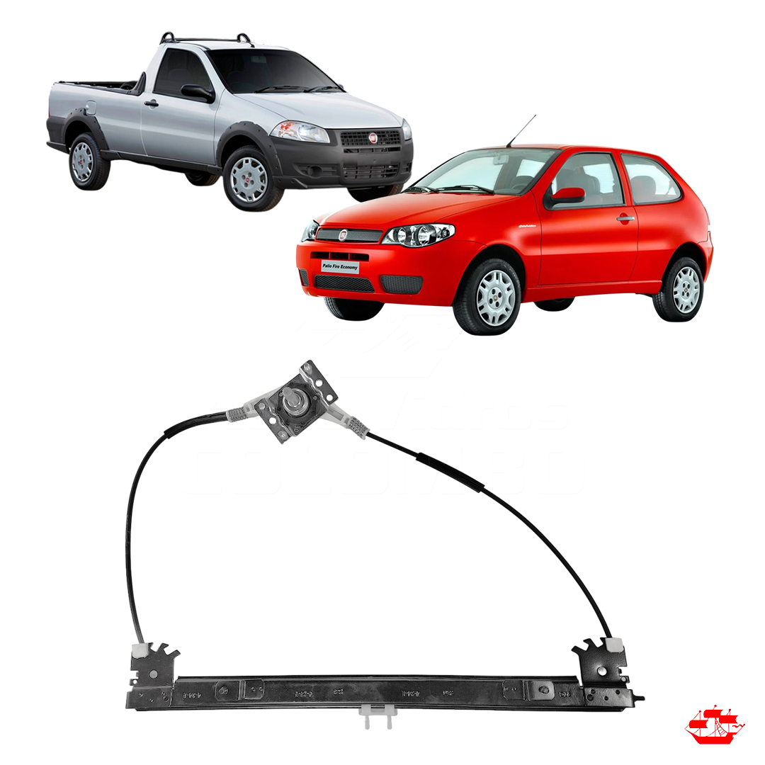 MAQUINA DE VIDRO MECANICA FIAT PALIO 2 PORTAS 1996 A 2017 STRADA 1998 A 2019 ESQUERDO